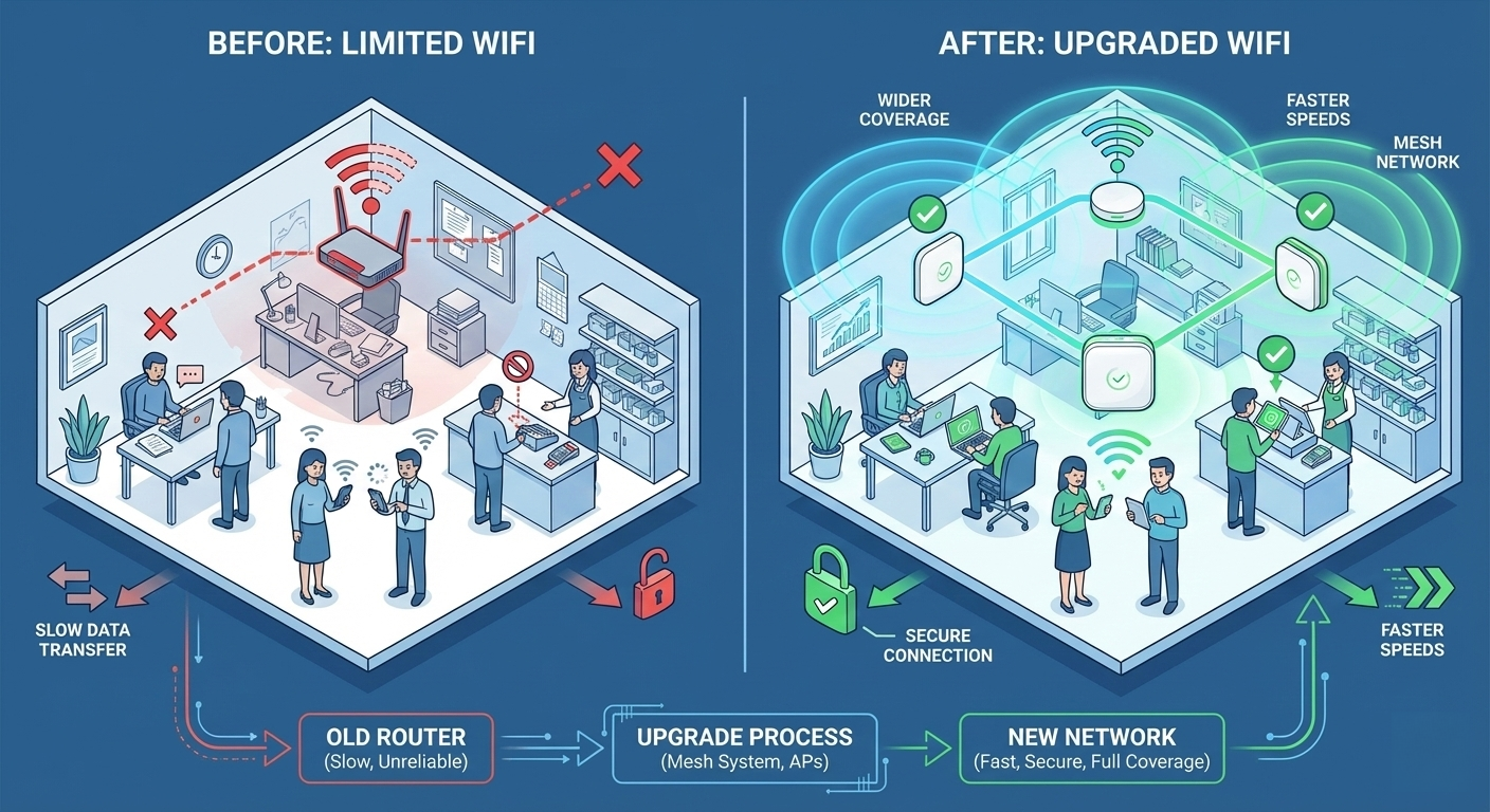 中小企業辦公室 / 店面 WiFi 升級示意圖