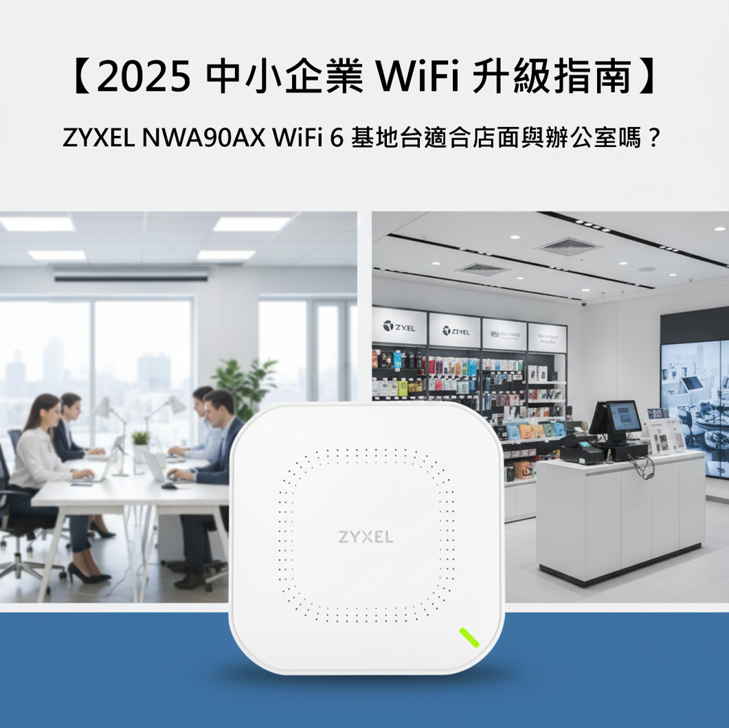 中小企業、咖啡店、零售門市 WiFi 常斷線或速度慢?本篇完整解析 ZYXEL NWA90AX WiFi 6 無線基地台的規格、特色、價格與安裝建議,協助你用合理預算打造穩定、安全又好管理的無線網路環境。