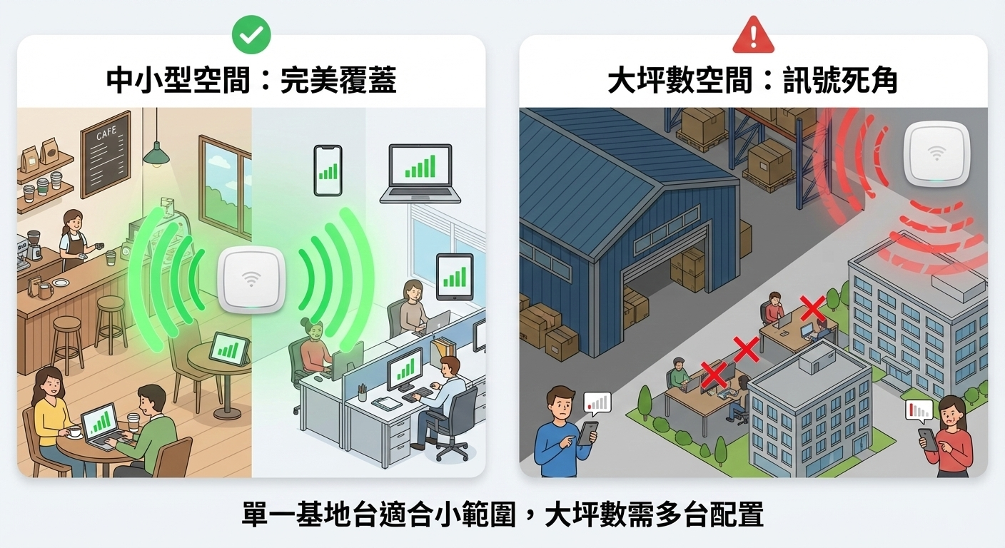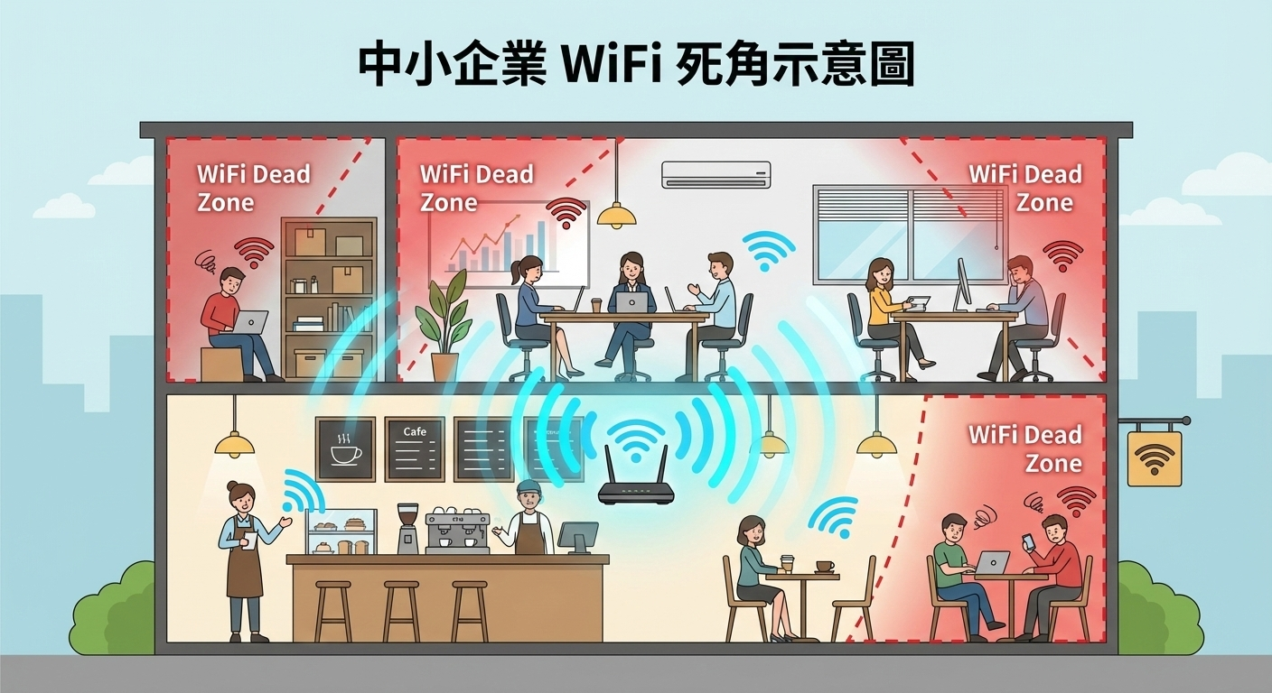 - 覆蓋不均、出現死角:一般家用路由器難以涵蓋較大的店面或隔間空間,導致某些區域訊號不穩。